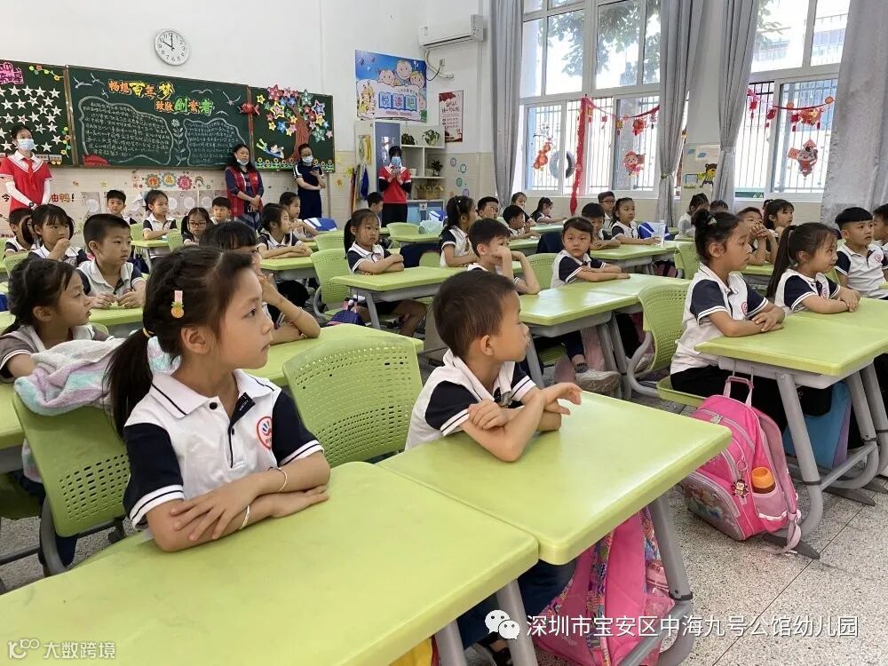 2021年4月21日上午中海九号公馆幼儿园组织大班幼儿前往新安中学(集团)外国语学校进行幼小衔接社会实践活动。孩子们怀着好奇和期盼的心情,参与了小学一年级的入队仪式及校园环境。