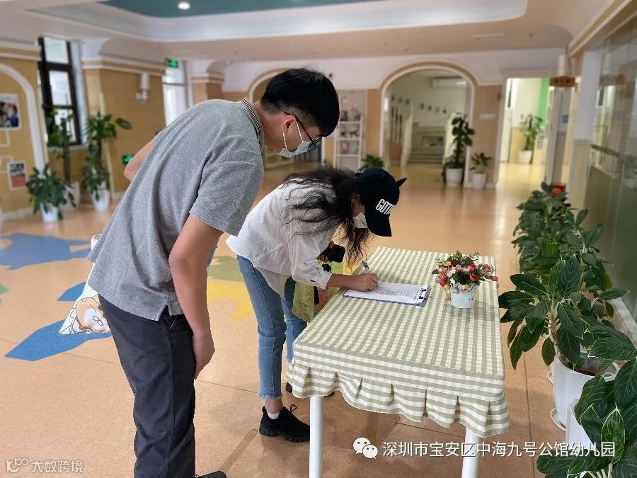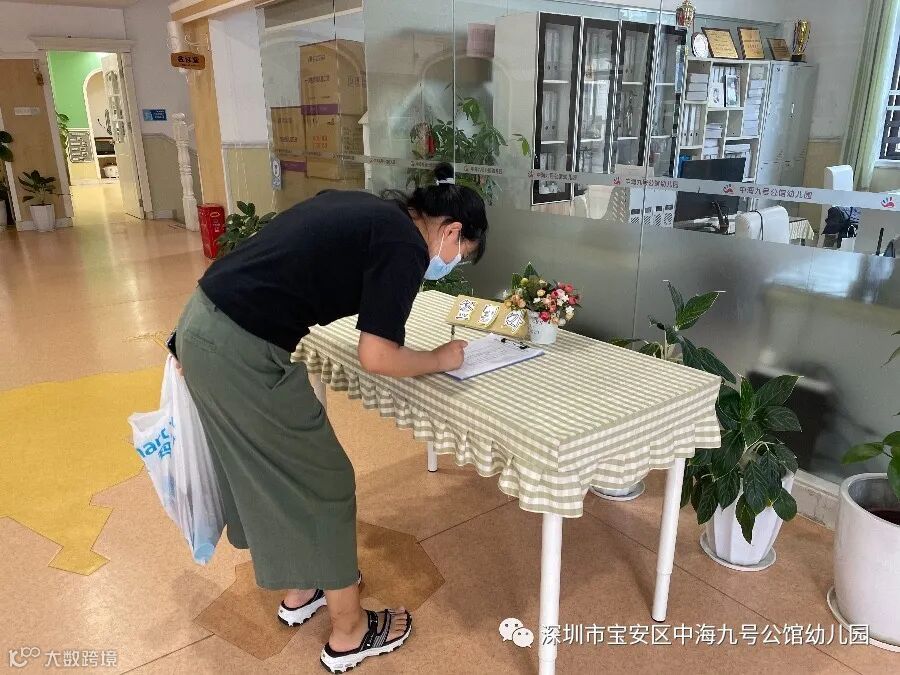 本次活动向各个班级邀请2名家长友情出演的家长“骗子”来到幼儿园参加防拐骗活动。进入幼儿园前,家长们通过扫描深i您,测体温并持绿码再进入到幼儿园签到处签到。