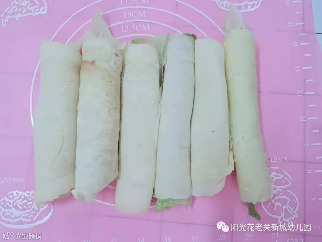 在小朋友们的共同合作下,蔬菜卷饼就做成了。宝贝们个个脸上洋溢着成功的喜悦。