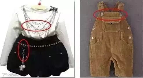 衣服上的小配件很有可能被小孩吸入气管,后果不堪设想…