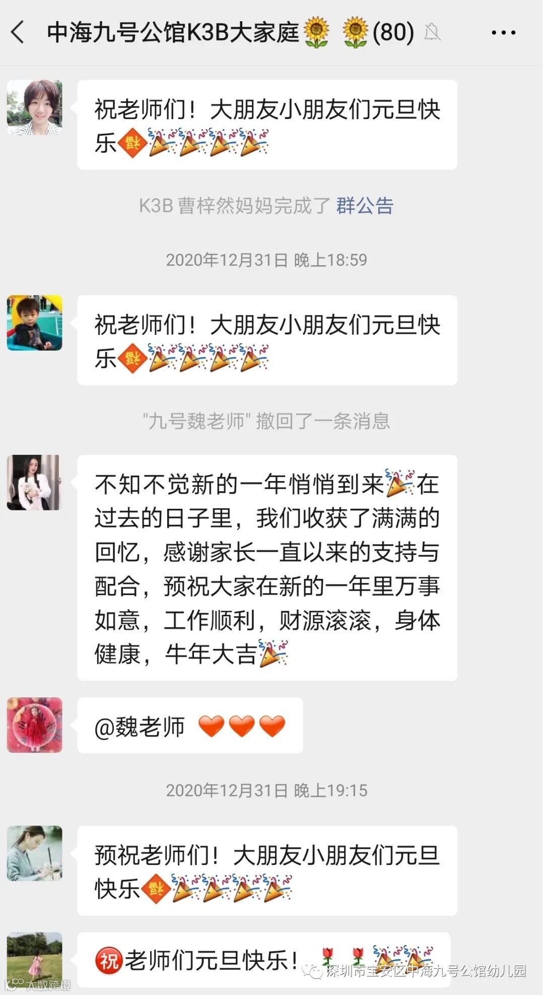 新年到,新年到,吉祥的话儿少不了~最后,让我们一起瞧瞧家长们及孩子们为大家送出的真挚祝福吧~