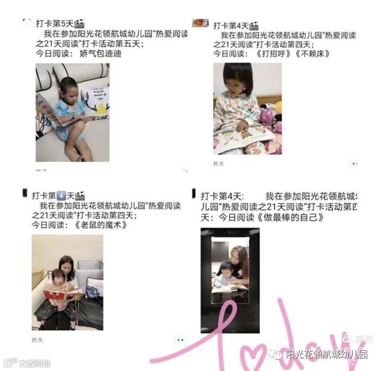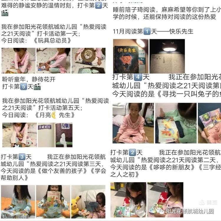 阳光花领航城幼儿园“爱上阅读月之亲子21天阅读打卡”活动圆满结束啦!