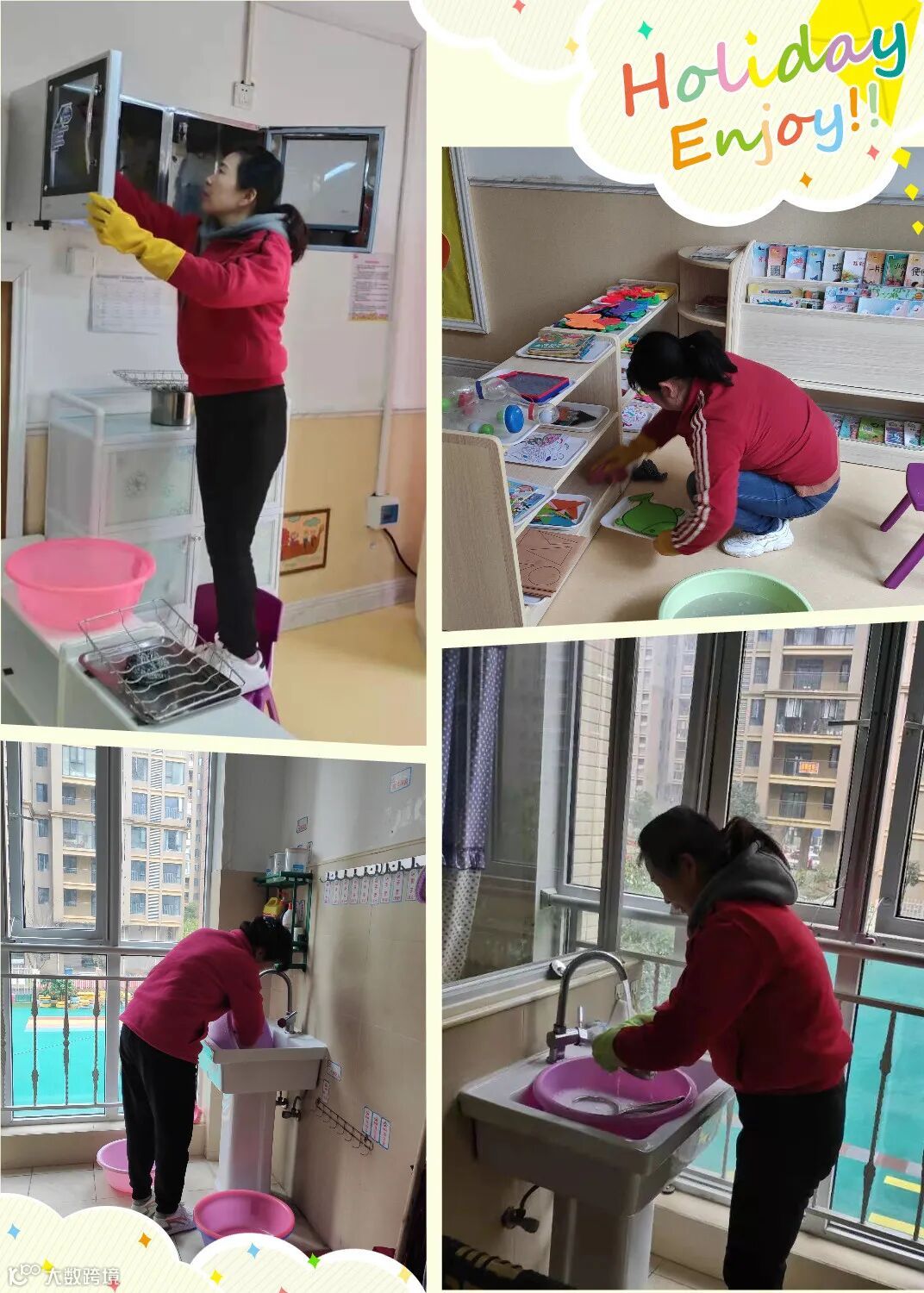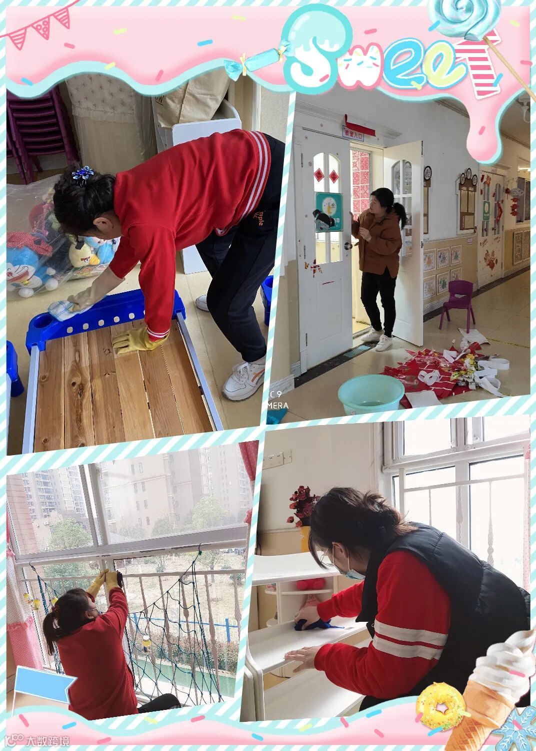 卫生消毒工作是幼儿园卫生工作的重点,为幼儿创造一个干净、整洁的生活环境。今日全园进行了卫生消毒大扫除工作。教室、走廊、卫生间、厨房、门、窗、桌、椅、床、扶手、地面、玩教具、生活用品等,所有教职员工扫的扫、擦的擦、洗的洗、冲的冲,一个个干劲实足,大家对幼儿园各个角落都仔细排查、认真打扫,做到不留死角、不留盲区。