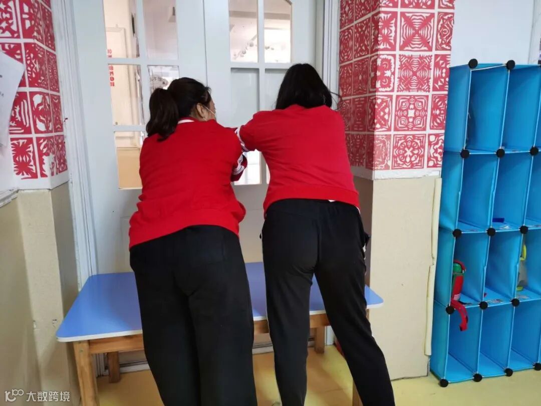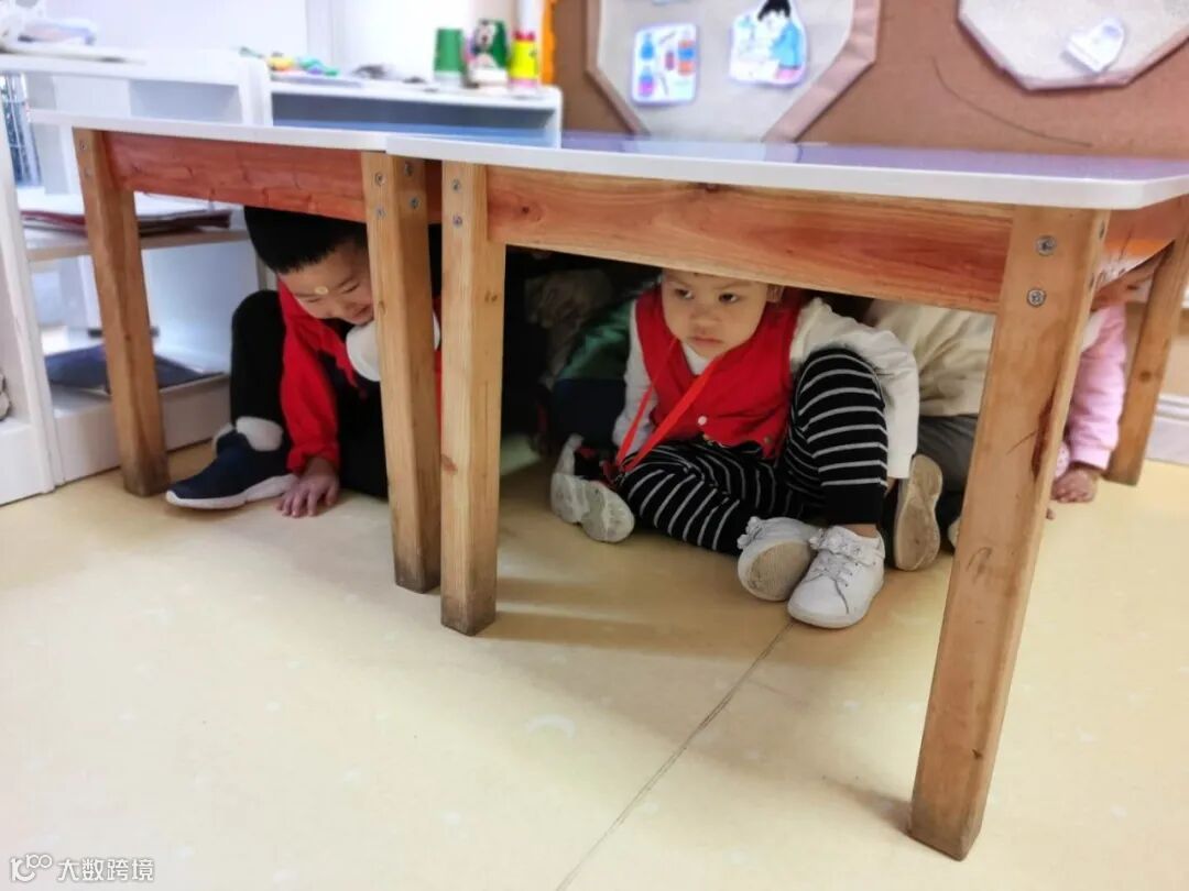 各班老师迅速带领幼儿撤离到就近班级,将门窗紧闭,并拿桌子等重物堵住教室门,防止暴恐分子破门而入。然后拉好窗帘,清点幼儿人数,保护好每个孩子的生命安全。