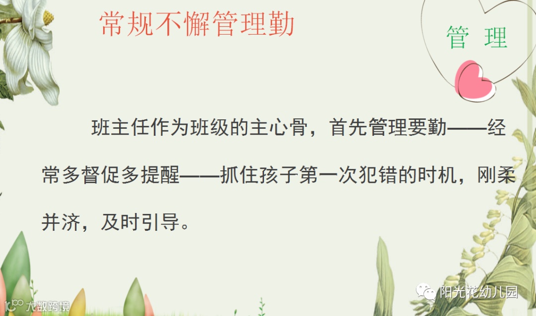 俗话说:“没有规矩,不成方圆”,这里的“规矩”、“方圆”就是指良好的常规和行为习惯,在幼儿园中,一日常规教育对幼儿的发展起着重要的作用,一个班级常规的好坏会直接影响幼儿的成长和教师组织一日活动的质量。幼儿园一日常规不仅是幼儿一日活动正常开展的保证,更是幼儿健康成长的保证。为了进一步贯彻《指南》的精神,引领教师关注细节,做细、做实、做好幼儿园的一日生活环节,12月10日业务培训中对全体主配教师进行了“班级一日活动常规”专项培训。