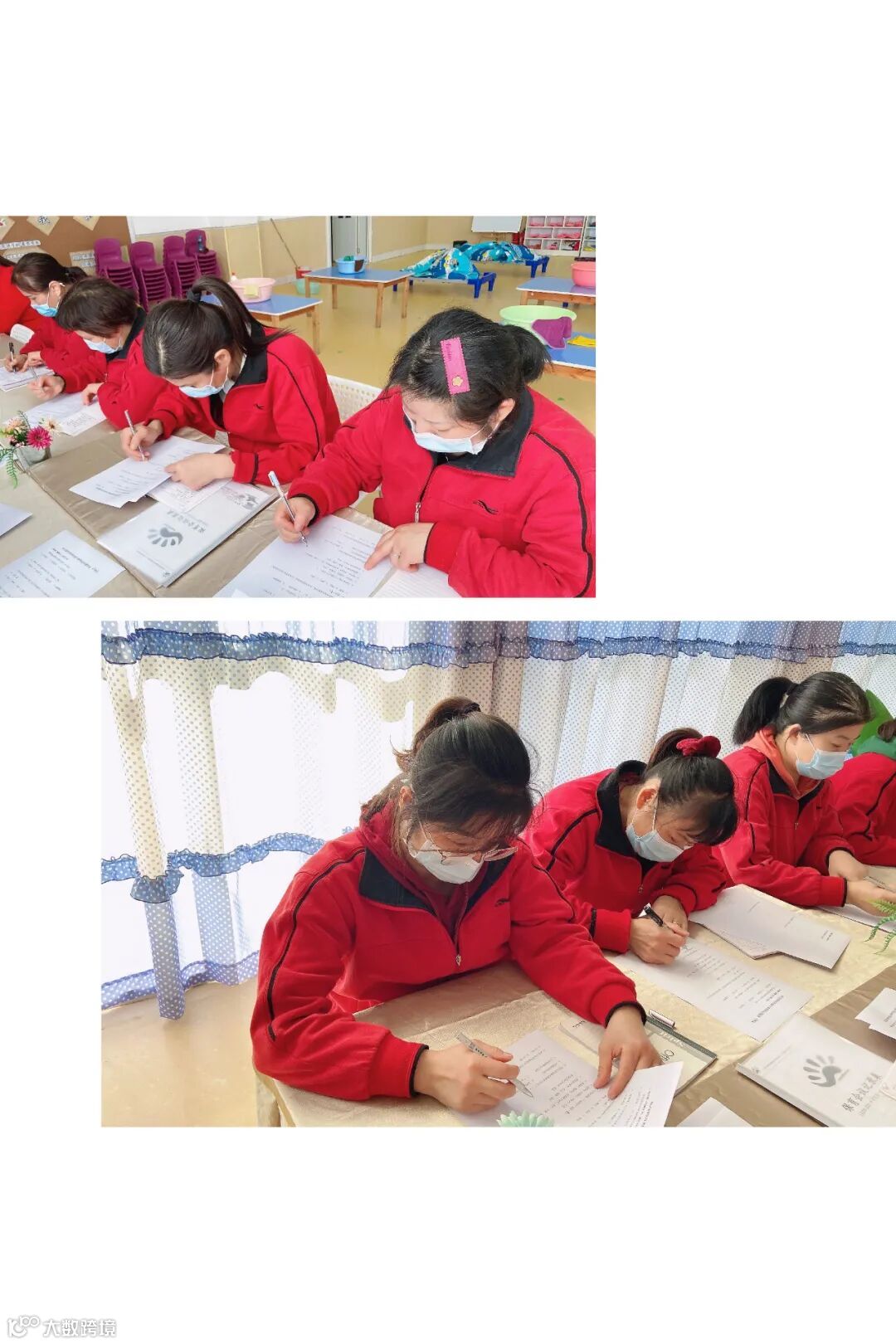 本次技能大赛首先进行的是理论知识笔试。本次的测试内容不仅涉及了工作职责、健康护理、卫生消毒等方面的知识,还针对特殊时期——新冠肺炎疫情期间的幼儿园一日保育操作流程进行考核。