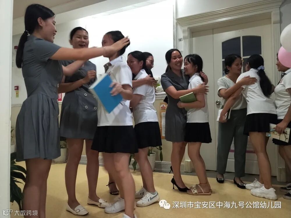 活动开始前,园务组在音乐厅门口等待老师们的进场并送上一个暖暖的拥抱。