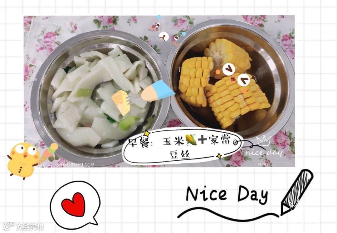 早餐:蒸玉米、家常豆丝
