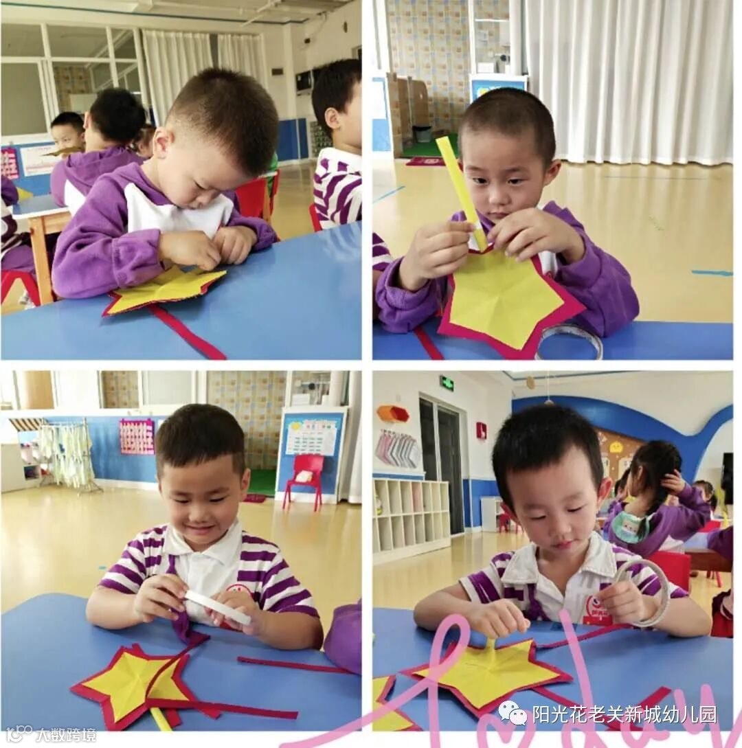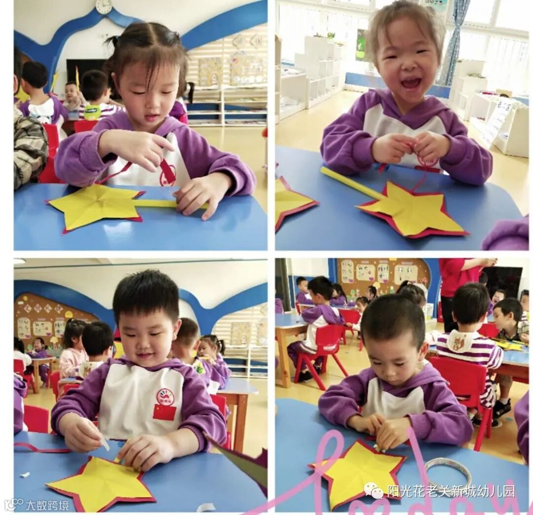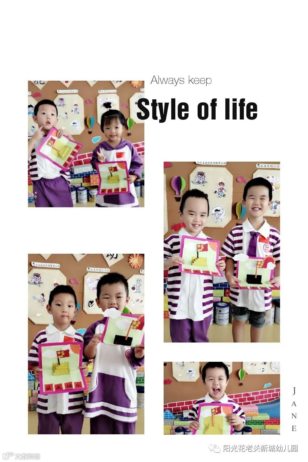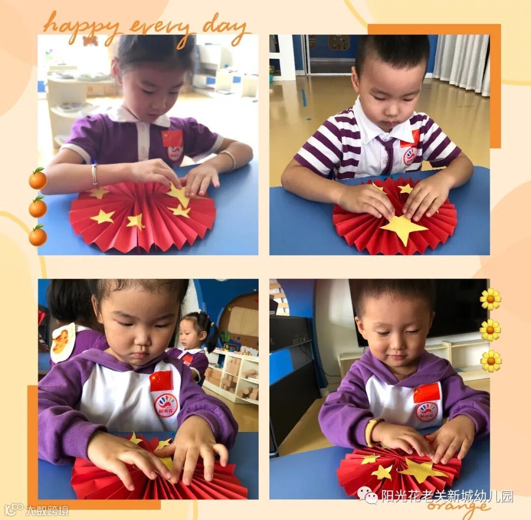一颗红星、一面国旗、一串灯笼、一直活泼可爱的玉兔······这些都是孩子对祖国妈妈深深的祝福,老师们巧妙地将国庆、中秋的元素融合在一起,和孩子们一起制作出一幅幅创意无限的手工作品,用自己独特的方式表达了热爱祖国的心声,把最美好的祝福送给了祖国妈妈。