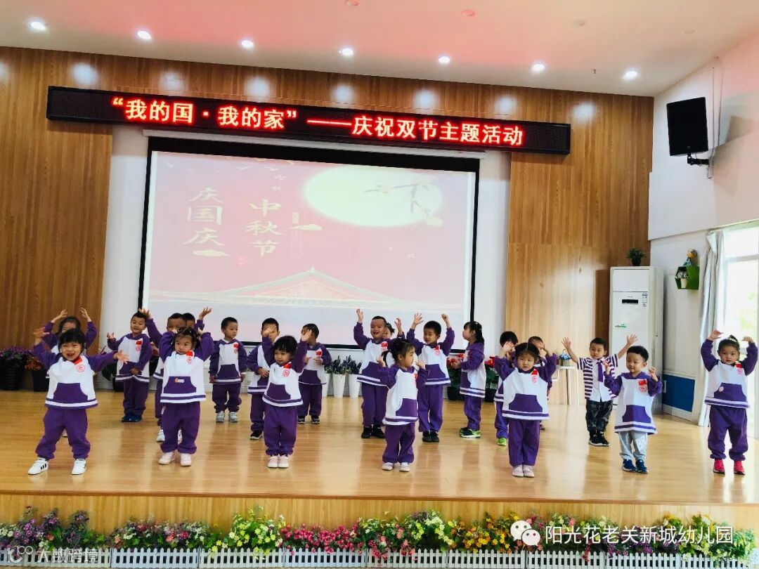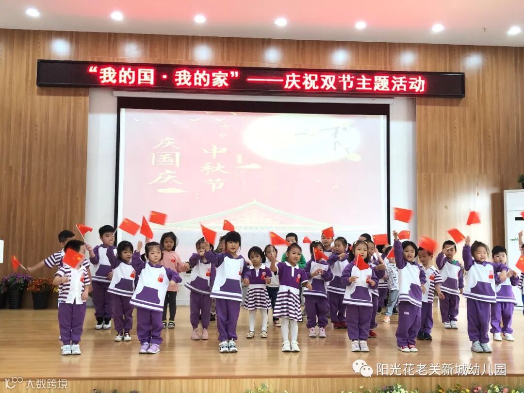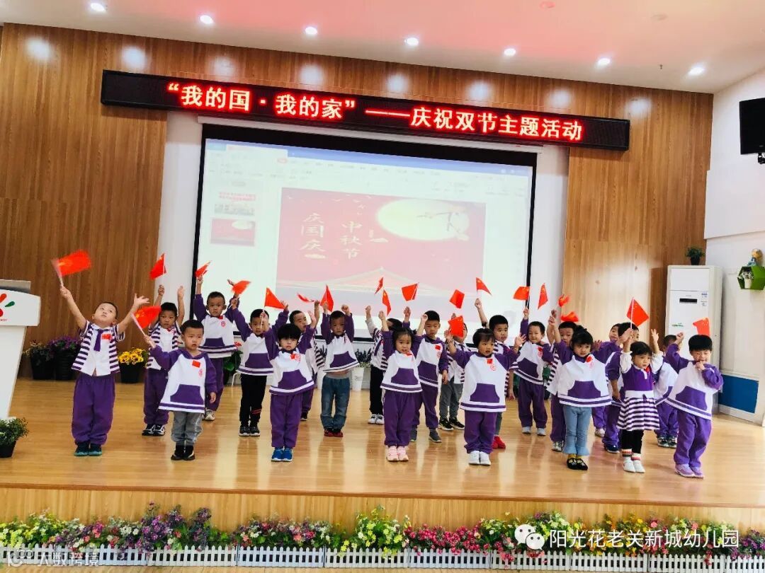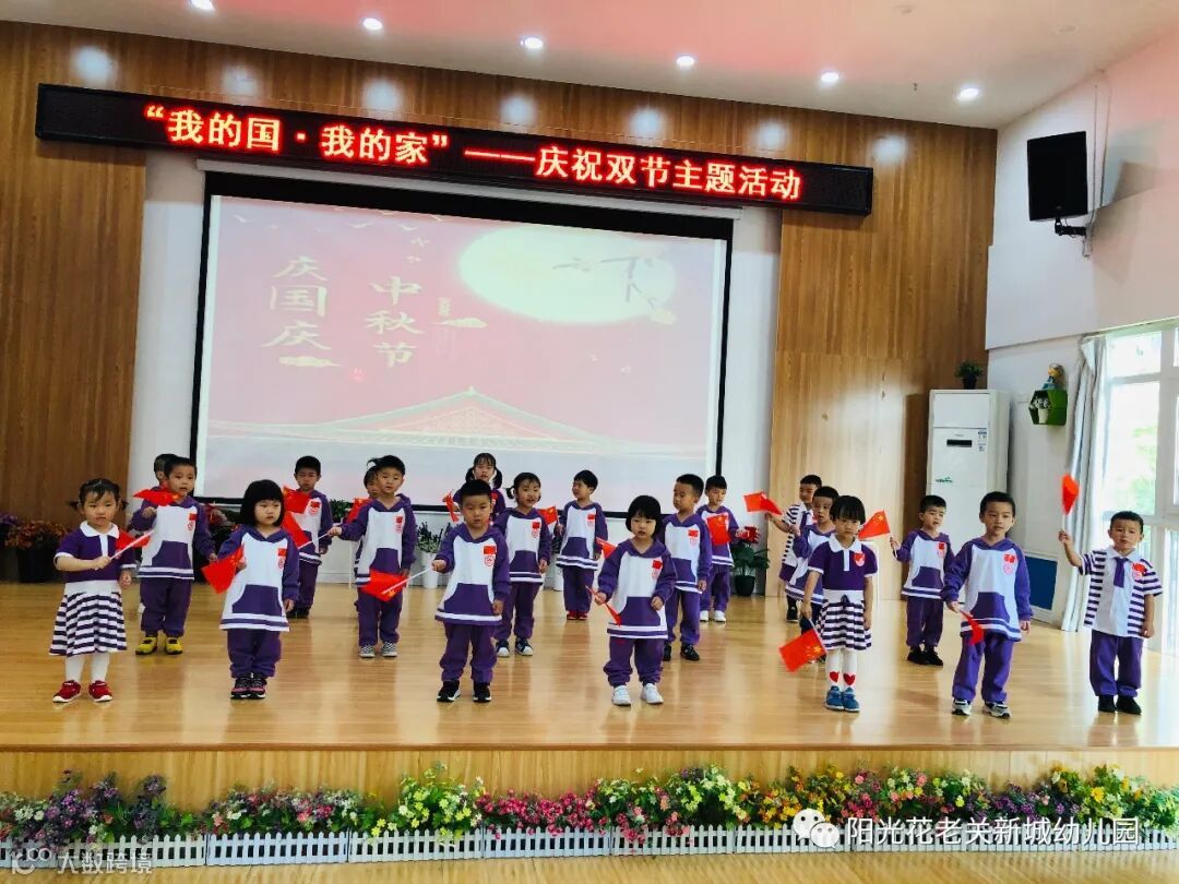 今天,满街扬起的国旗和满街飘香的月饼,国泰民安和阖家欢乐,国与家撞了个满怀。中秋遇上国庆,今年的十一,必定是阖家欢乐、举国同庆。今天,老关新城的宝贝们在音体多功能室开展了“我的国·我的家”红歌及中秋歌曲大赛,幼儿铿锵有力的气势,充沛饱满的情感,自信大方的风采在赛场上掀起了一个又一个高潮,老关新城幼儿园全体教职工和小朋友们祝福大家双节快乐,也祝愿我们伟大的祖国永远繁荣昌盛。