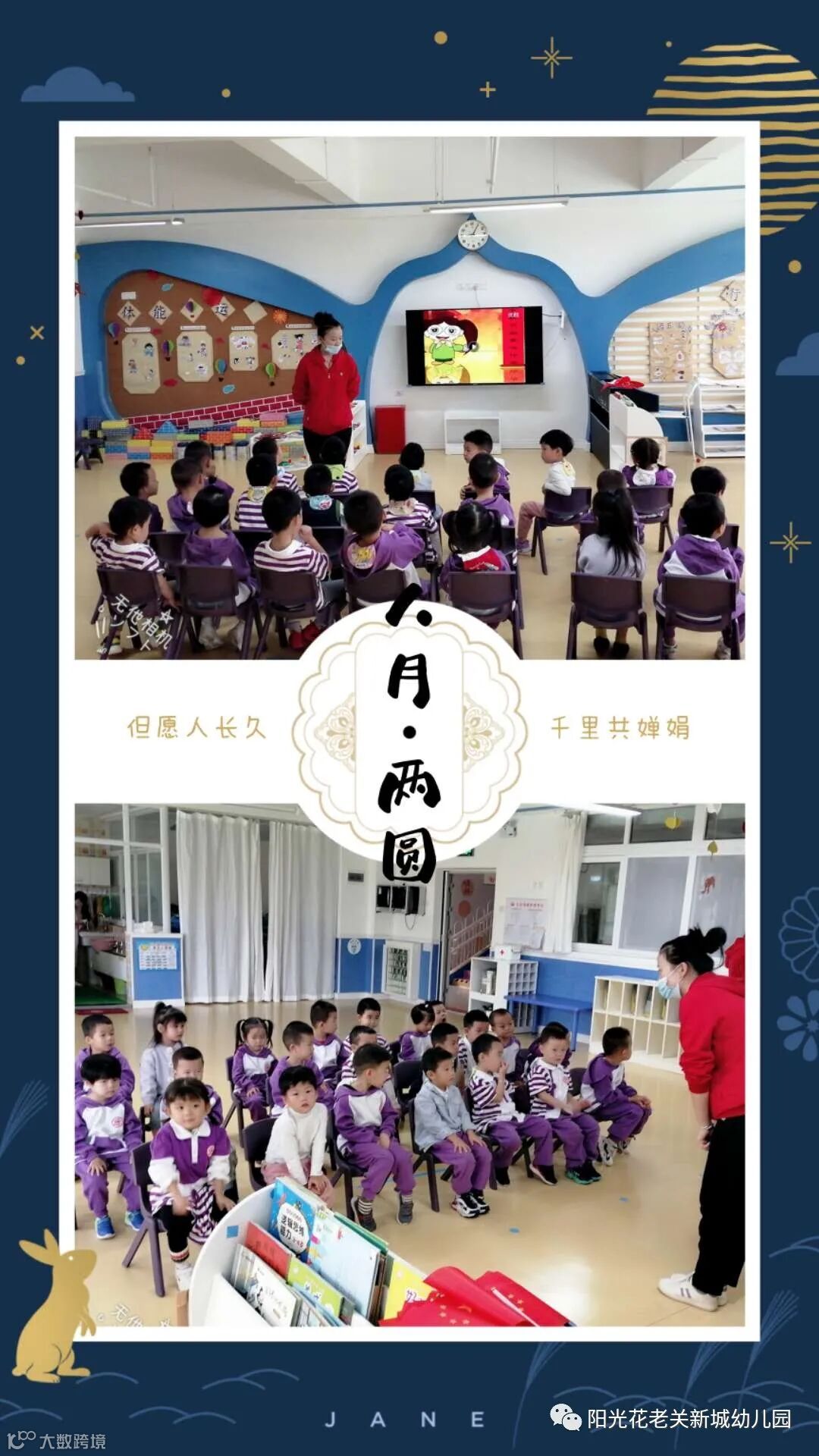 爱祖国、爱家乡是教育中不可忽视的主旋律,老师们通过图片、视频等形式向孩子们讲解了中秋节的由来及关于中秋节的习俗、故事等等,进一步激发了幼儿爱家乡、爱祖国的情感。