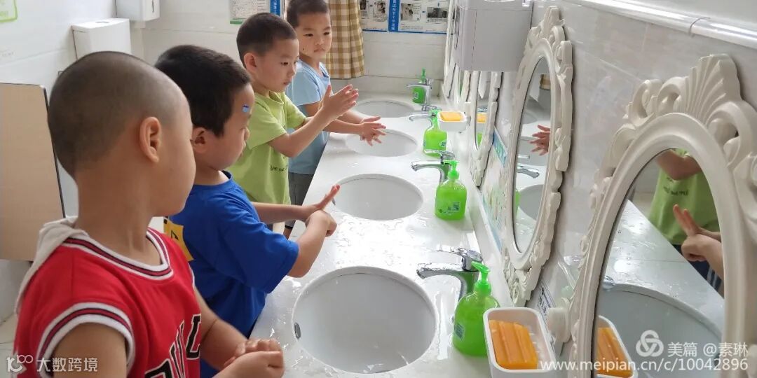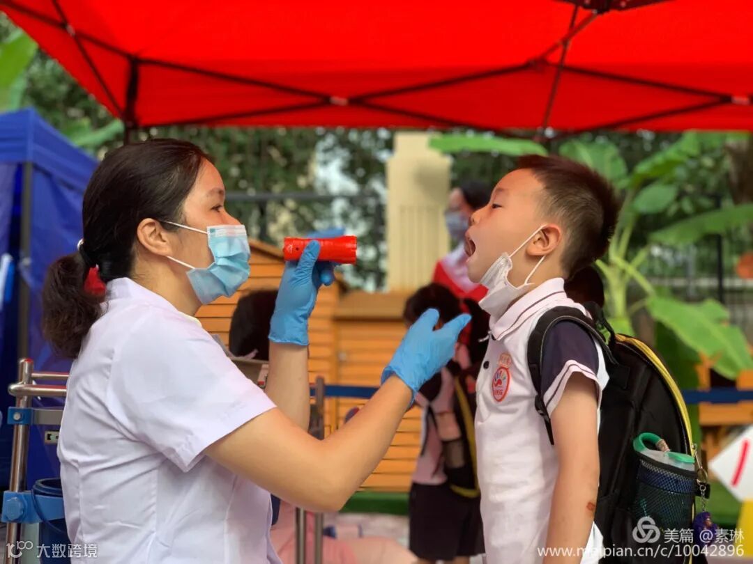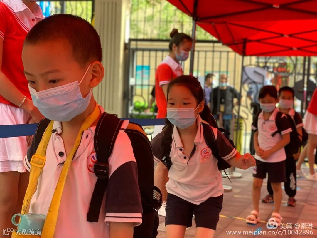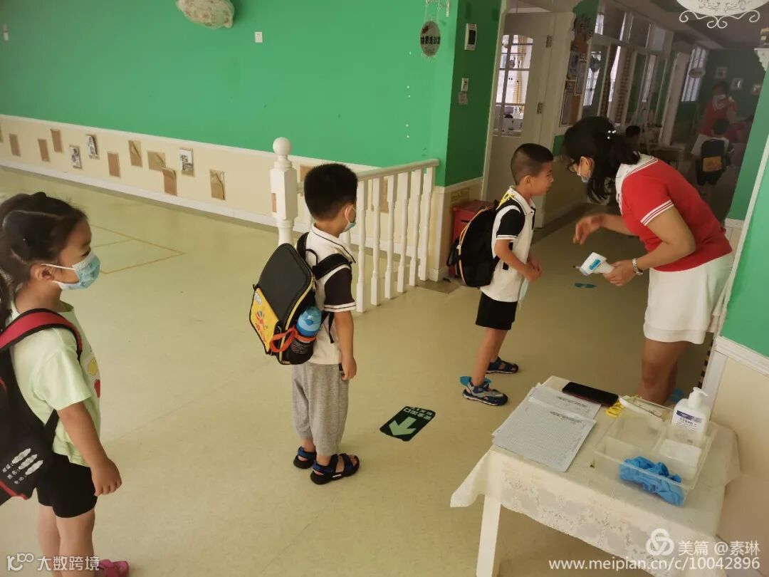 为了保障孩子们的健康安全,每个进入校园的宝贝,都必须戴口罩、间隔一米。