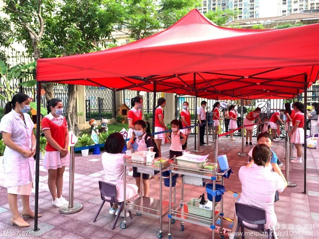 清晨,微风轻拂,缇香的娃娃们背上小书包、拿着小水壶、戴上小口罩,等待着回归美丽的幼儿园。受疫情影响,新学期的入园方式可有些不一样,进入幼儿园需要有序排队、测量体温再分段入园。随着可爱的孩子们有序入园,安静的缇香校园渐渐苏醒,恢复了往日的活力!