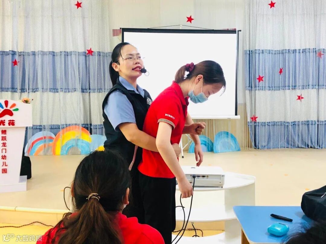 随后,陈老师针对气道异物梗阻,现场演示了海姆立克急救法,不同年龄段有不同的急救方法,海姆立克急救法在陈老师生动的讲解中,不仅让老师掌握了对儿童的急救方法,也让老师知道了对大人、老人、自救的正确方法。