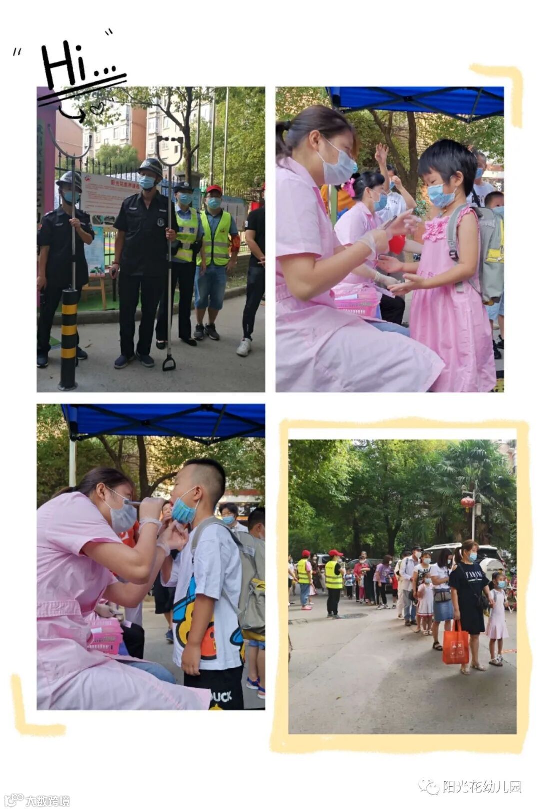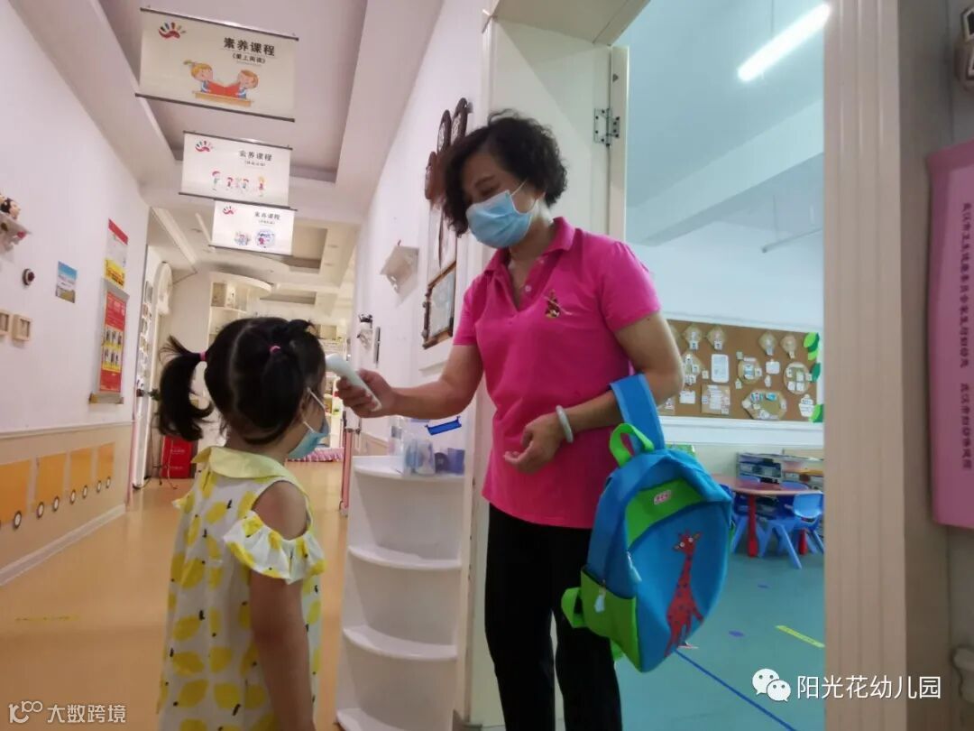 开学我们采取宝贝们分时段入园的方式,佩戴口罩,“入园消毒”、“初次测温”显示体温正常后后,家长们放手让贝宝走向教室,去迎接这充满关爱和温情的小世界。