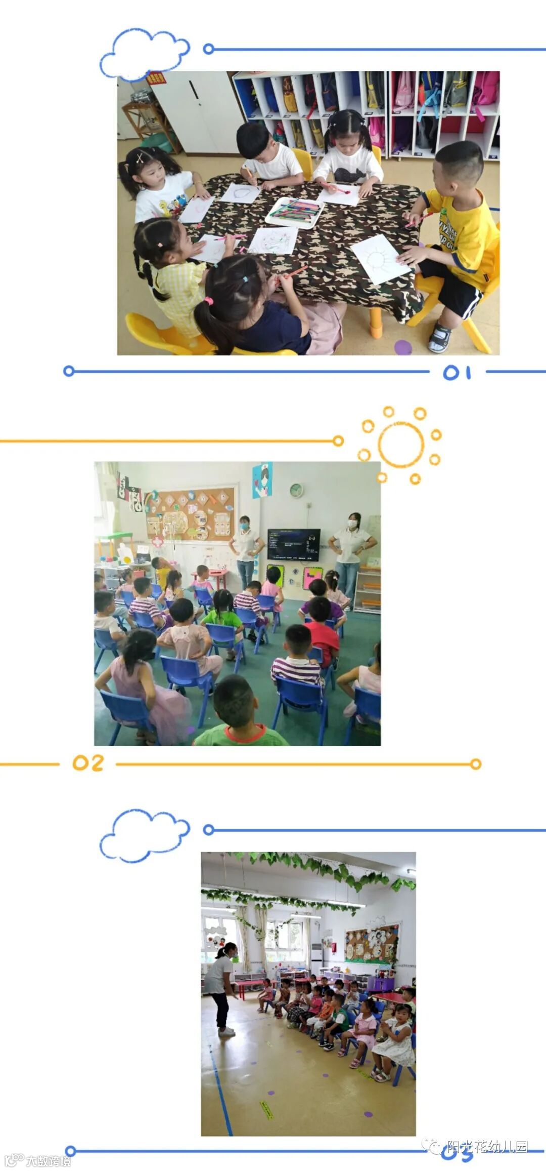 萌宝们迎着朝阳、带着微笑。