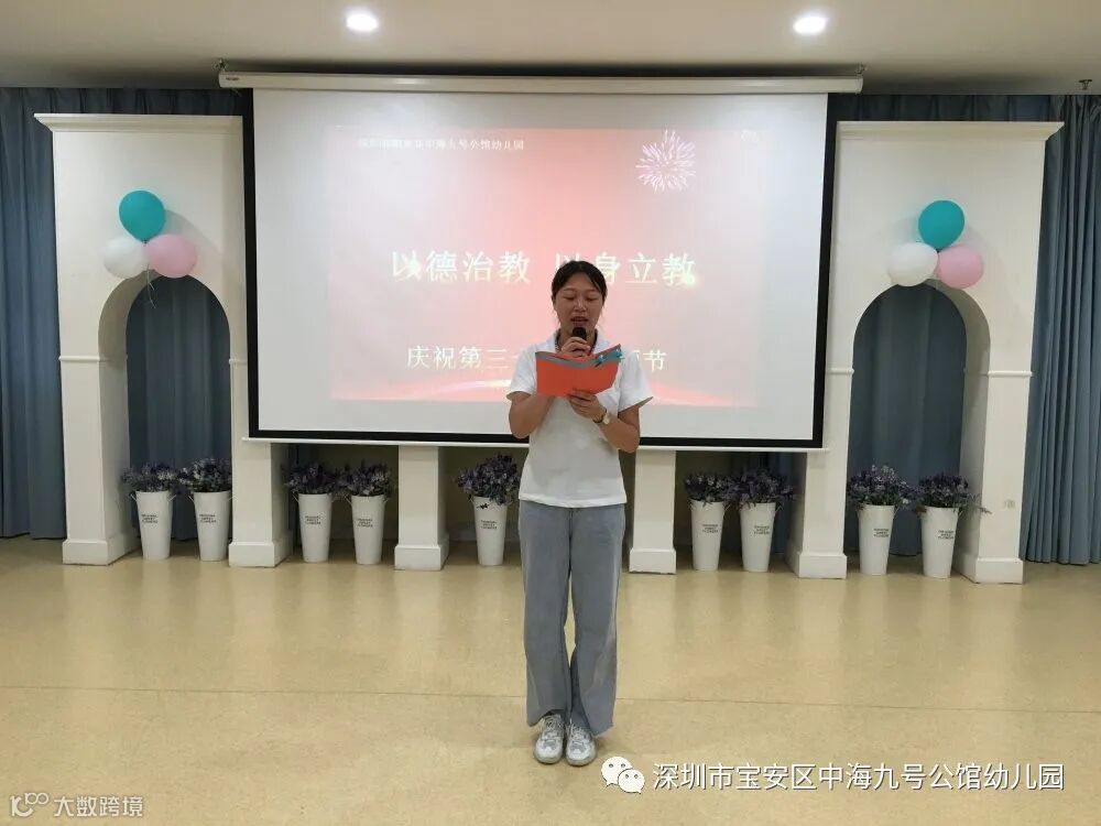 著名教育家陶行知说:一举一动、一言一行,都要修养到不愧为人师表的地步!这句话完美的诠释了作为人民教师的师之道德与身正为范的基本素养。在第三十六个教师节来临之际,中海九号公馆幼儿园于2020年9月10日开展“以德治教、以身立教”为主题的教师节工会活动,全体教职工欢聚一堂,共同庆祝第三十六个教师节的到来。