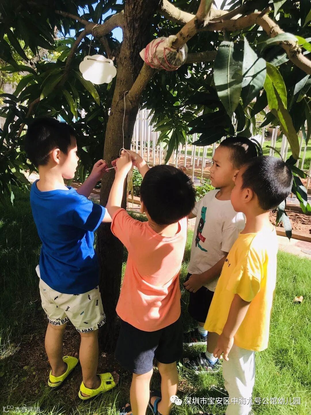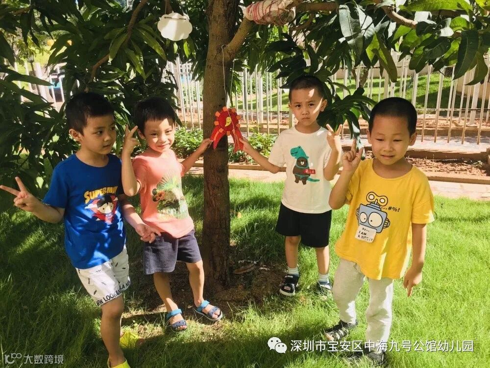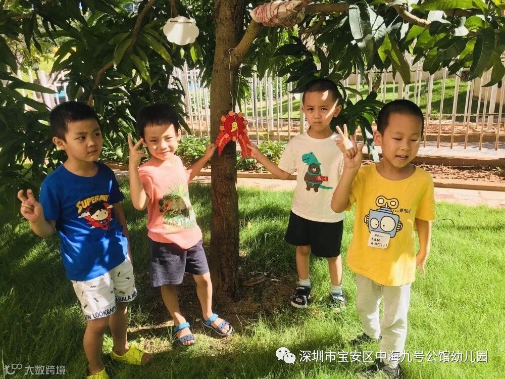 品尝完美味的芒果,有小朋友提议道:老师我们以后要常给果树浇水,这样才能结出更多更大的芒果,不如我们给芒果树颁个徽章吧,谢谢它让我们尝到了这么美味的芒果。