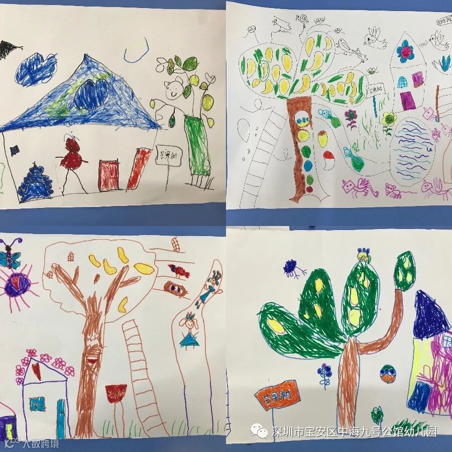 孩子们本次观察芒果树延伸到班级美术教育活动当中,现在,我们一起来看看孩子们心目中的芒果树和芒果吧!