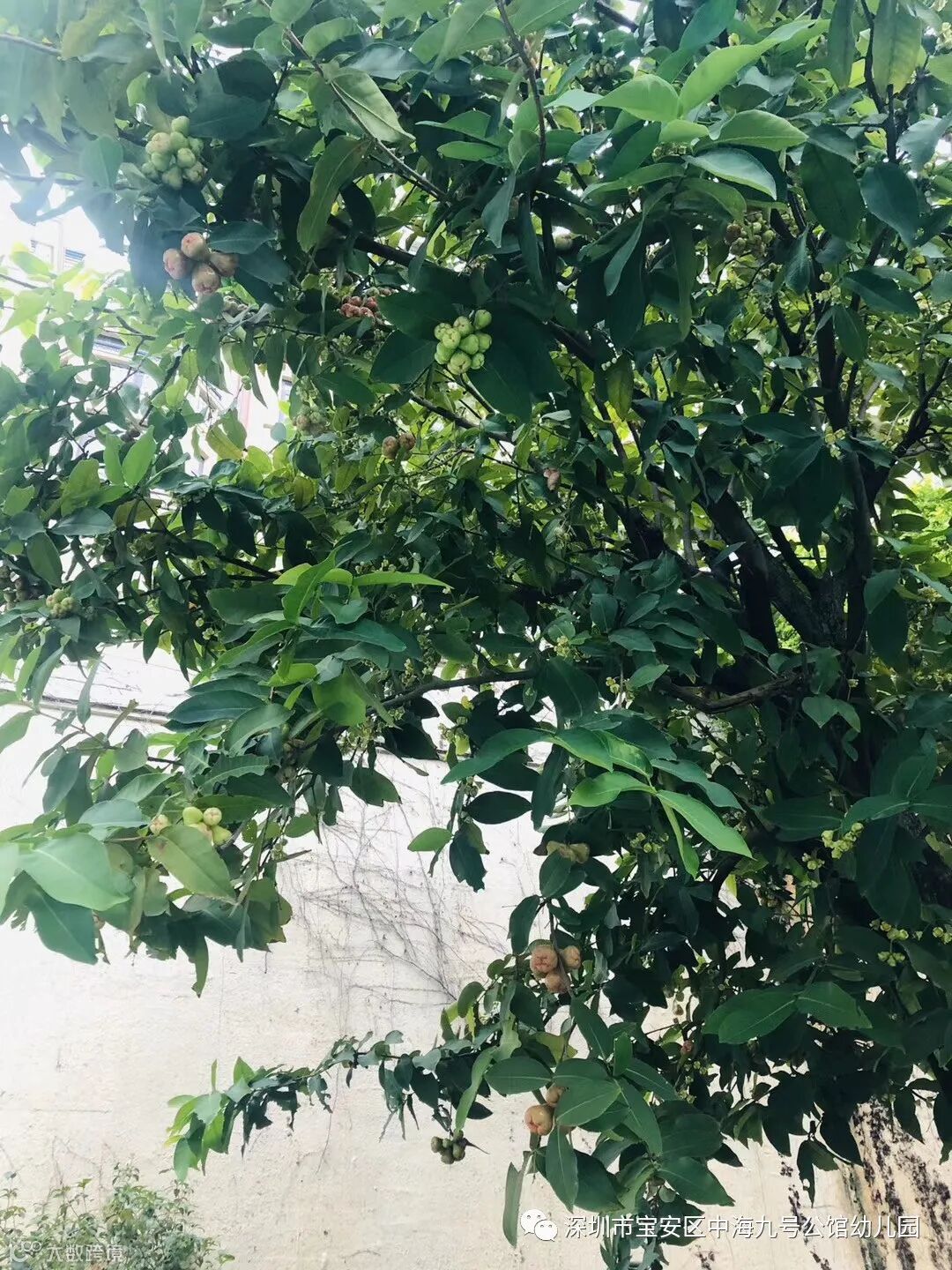 今天,老师带着孩子们户外活动时,大家观察着幼儿园的变化,一走到种植区,孩子们就发现种植区上的果树上结满了果实,一个个的果实真诱人呀!