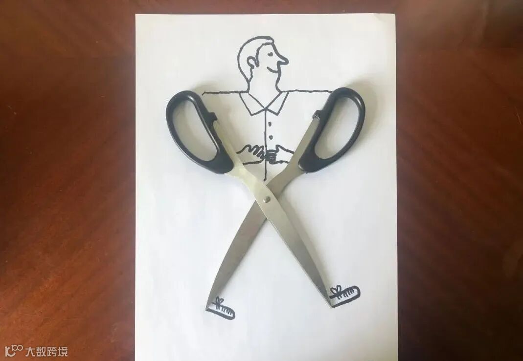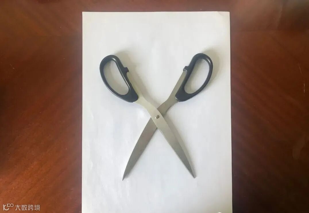 步骤一:打开剪刀,刀尖朝下放在白纸上。