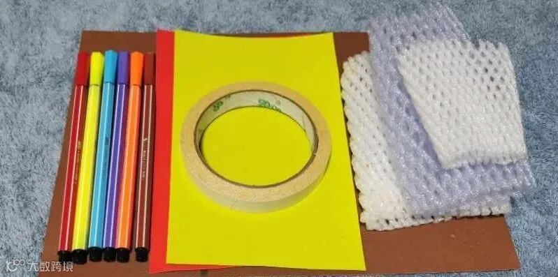 小朋友们,今天我们一起来用包水果的泡沫网进行有趣的美术游戏吧!