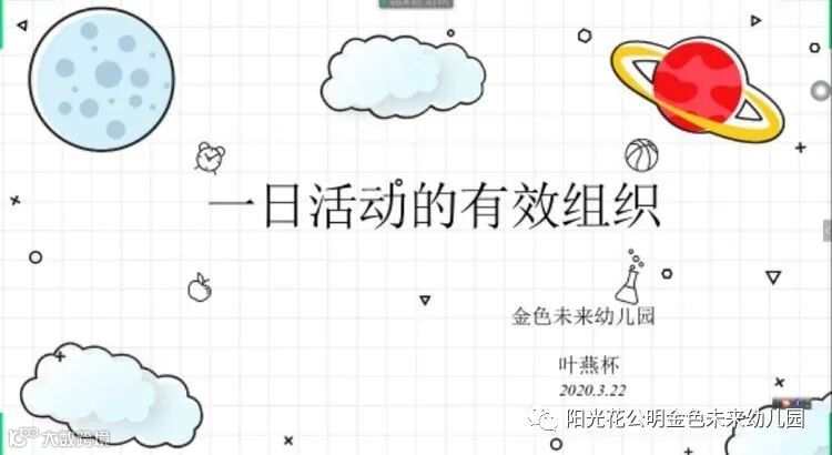 在防疫的特殊时期,虽然大家不能像往常一样聚集在一起开展学习培训活动,但网络平台给我们提供了交流的便利。2020年3月22日,叶燕杯主任组织全体教师进行了《一日活动有效组织》的培训学习。