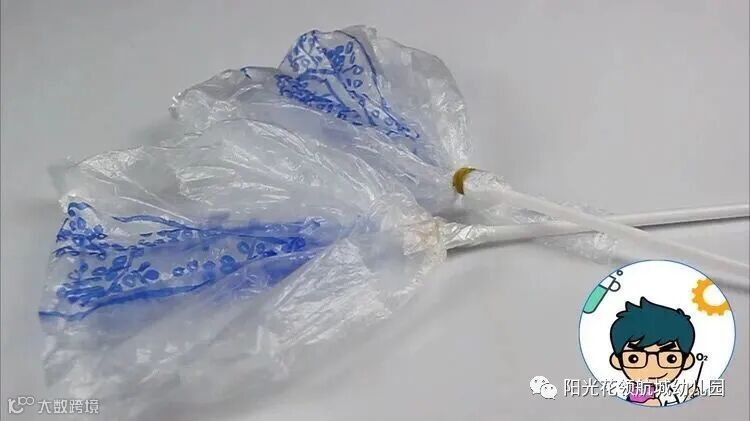 2.将保鲜袋套在吸管上,并用橡皮筋扎紧,这样两个“肺”就做好了,注意不能漏气哦。