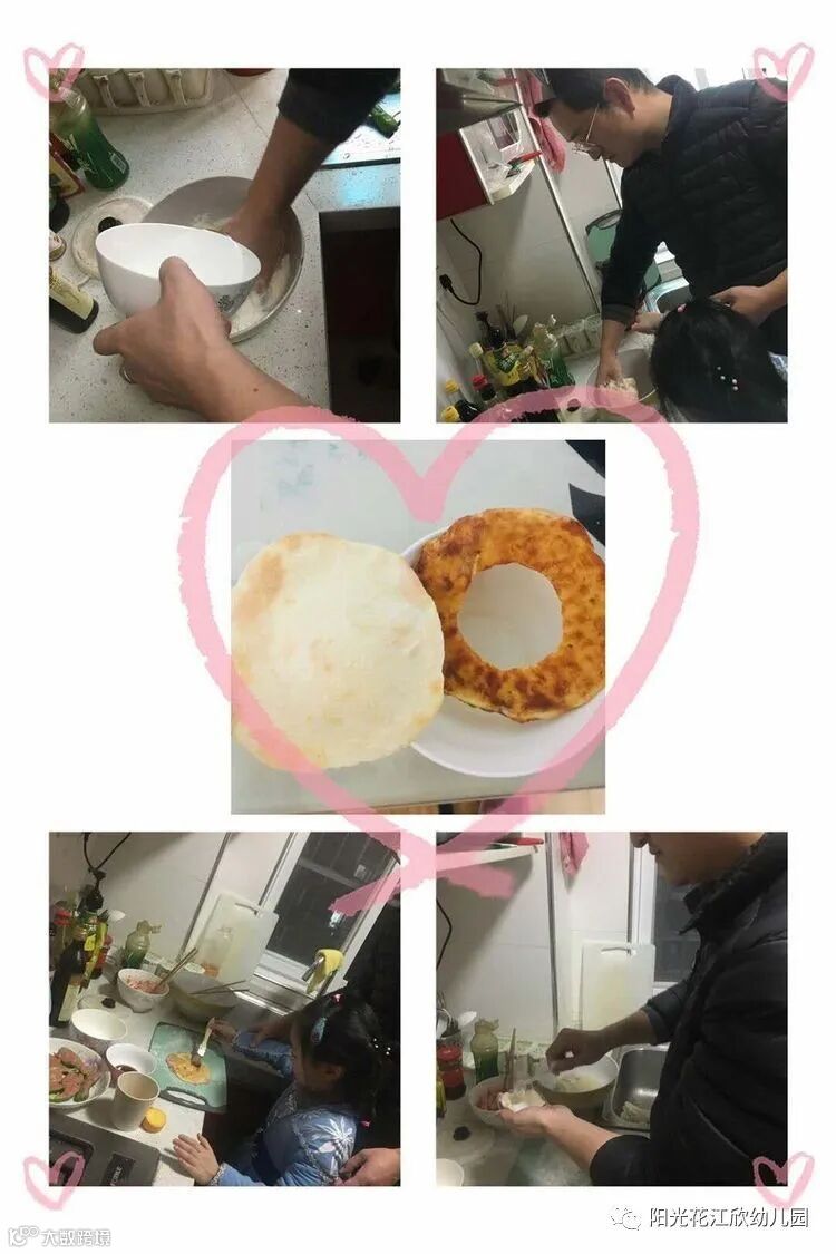 1.爸爸说,今天是妈妈们的节日,我们要一起做家务,让妈妈好好休息。看,我和爸爸手艺怎么样?