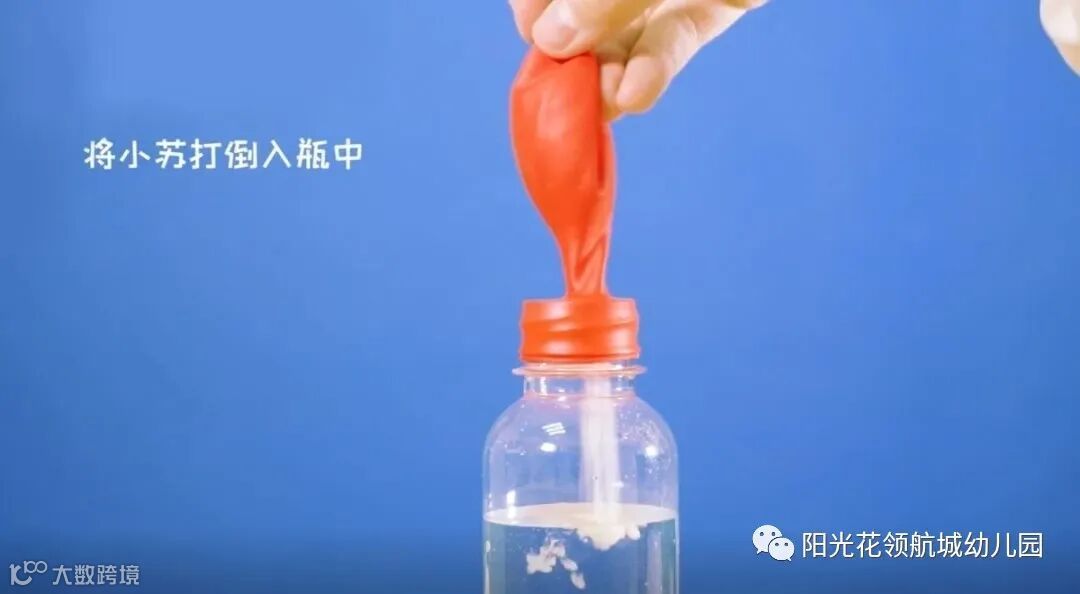将气球套在瓶口上,并把小苏打倒入瓶中