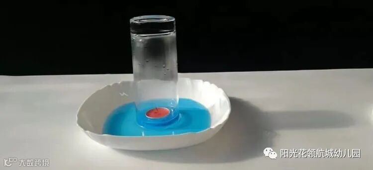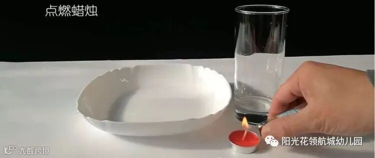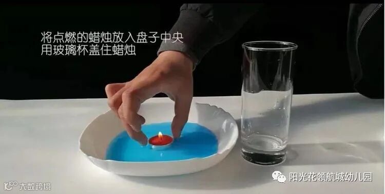 3.将点燃的蜡烛放入盘子中央用玻璃杯盖住蜡烛;