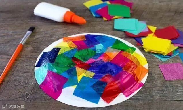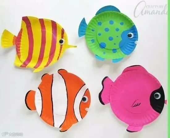 纸盘(2个)、彩纸、颜料、剪刀、塑料眼睛、珠片、小贝壳、小螺、沙子、白乳胶、麻绳。