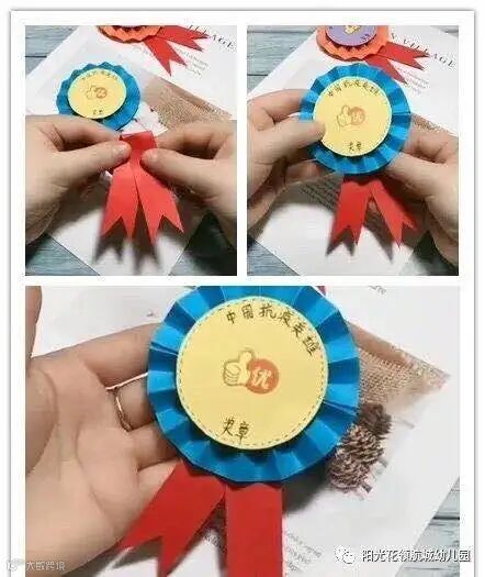 7.送给英雄的勋章就做好啦,小朋友们,快快动起你们的巧手,一起给抗疫英雄设计一枚勋章吧!