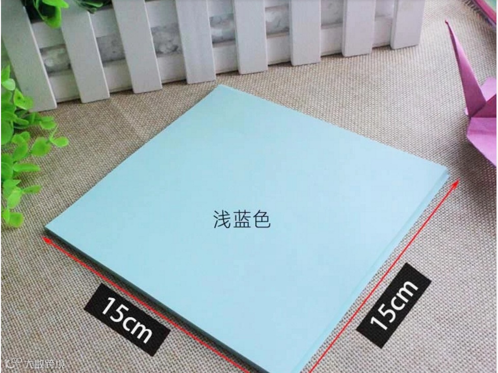 1.准备一张长方形彩纸,四次对折之后将彩纸打开。