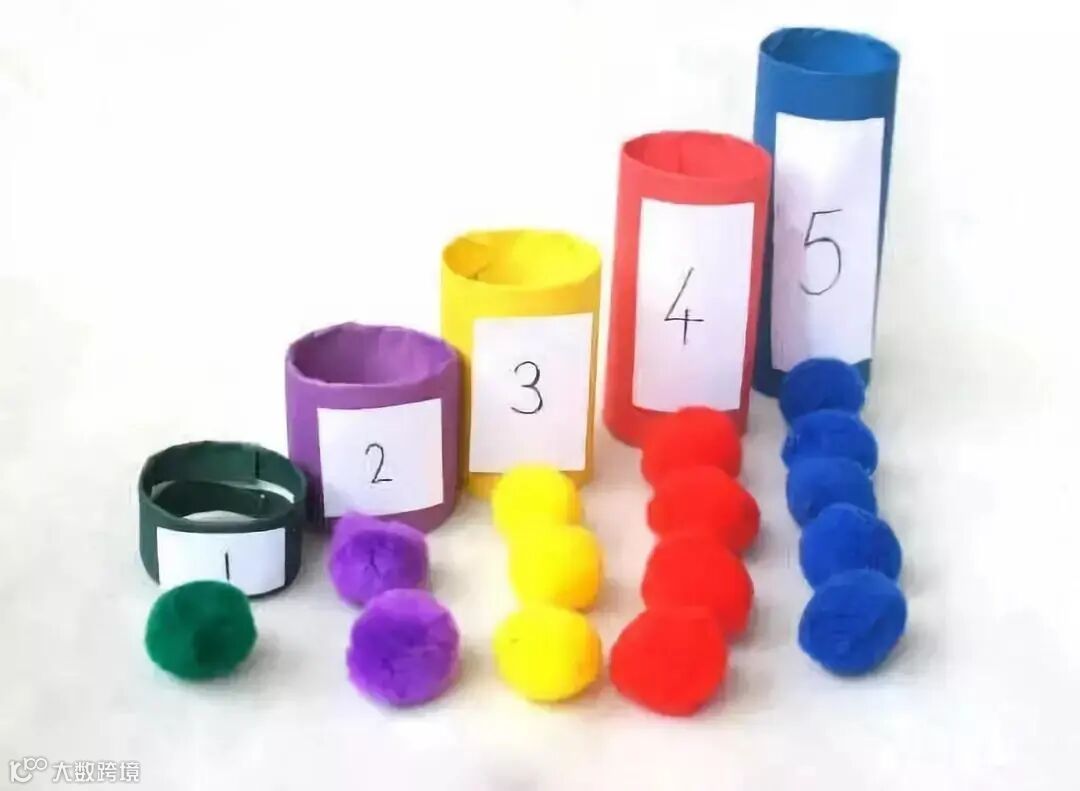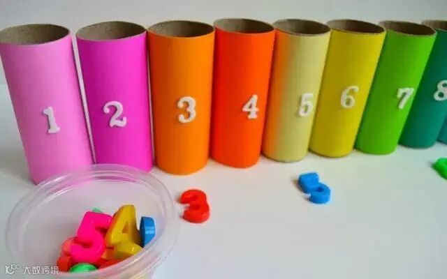 准备卡纸、纸筒、数字,在纸筒上写上数字,让孩子把相应的数字放在纸筒里。