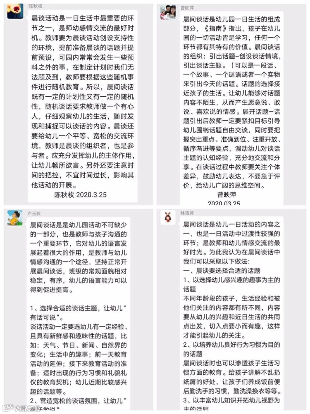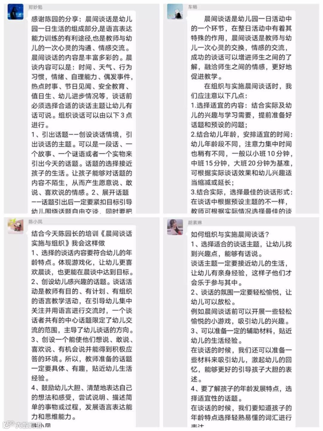 培训结束后,老师们将自己认真学习的心得与大家分享,每个老师都有自己对晨间谈话活动的见解与反思,看到密密麻麻的文字感受到老师们的所思所想,真是收获满满。