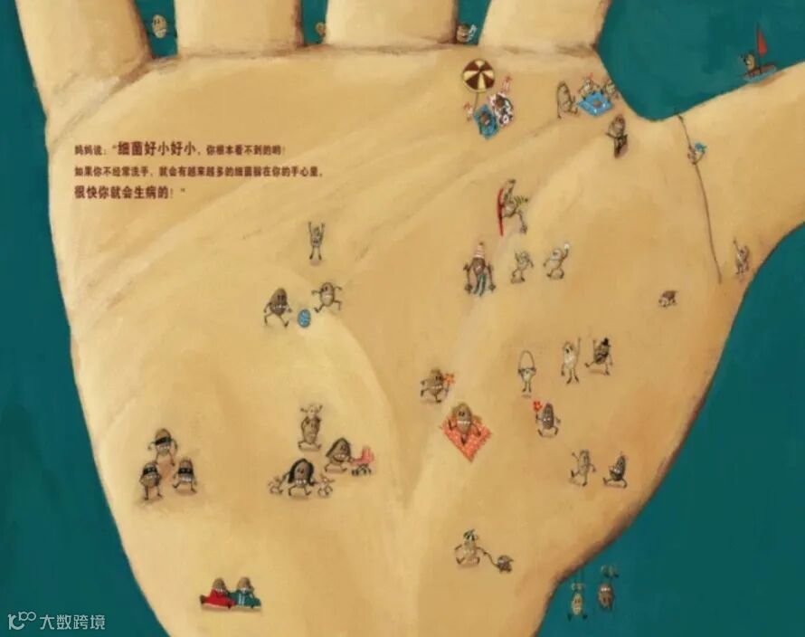 妈妈说:“细菌好小好小,你根本就看不到的呦,如果你不经常洗手,就会有越来越多的细菌躲在你的手心里,很快你就会生病的!”