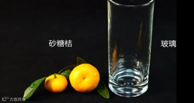 准备两个橘子、一个可以容纳橘子的杯子、水。