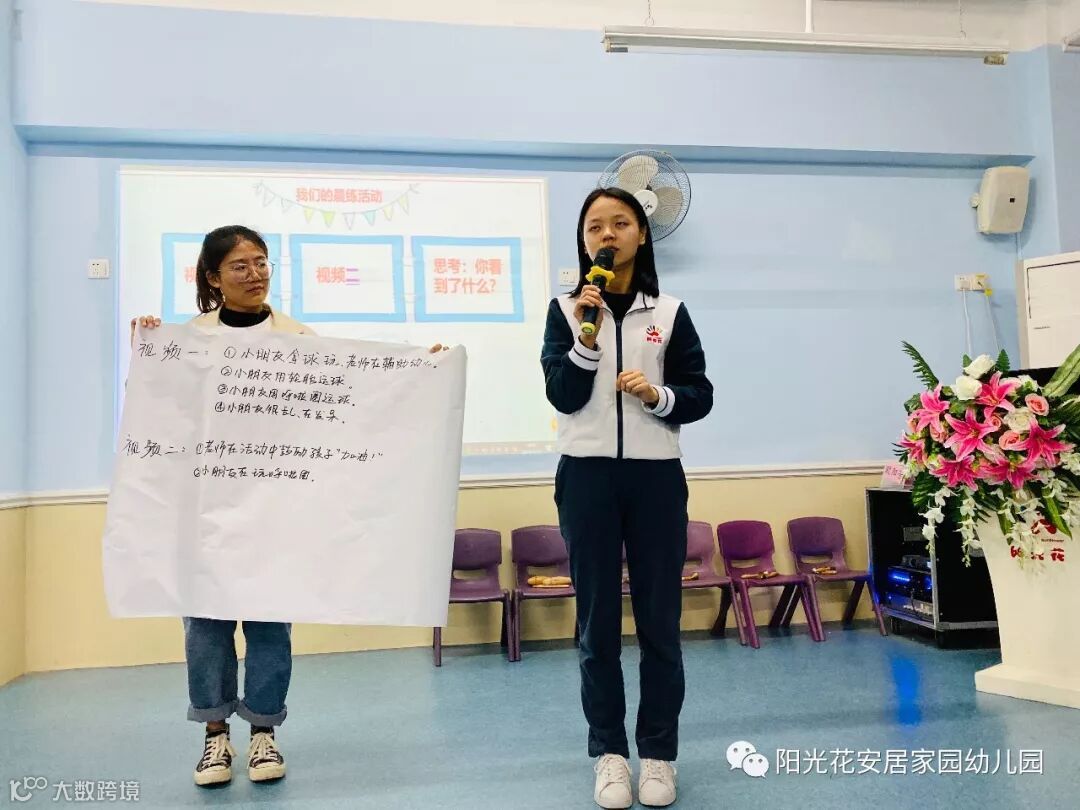 紧接着,张园长通过日常活动中观察到的情况以及发现的问题与大家进行分享,并从教师组织、幼儿发展、活动小结等方面中的问题与大家进行了研讨。