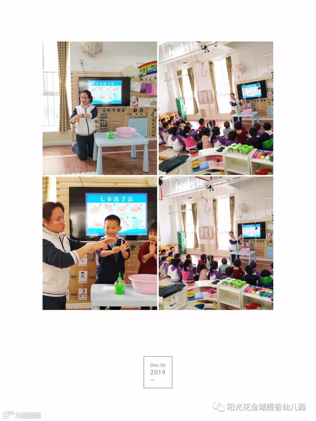 今天大四班小朋友学习了生活技能之七步洗手法,小朋友们热情高涨,非常开心,因为又多了一项技能。