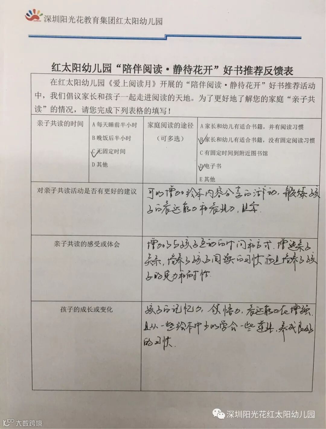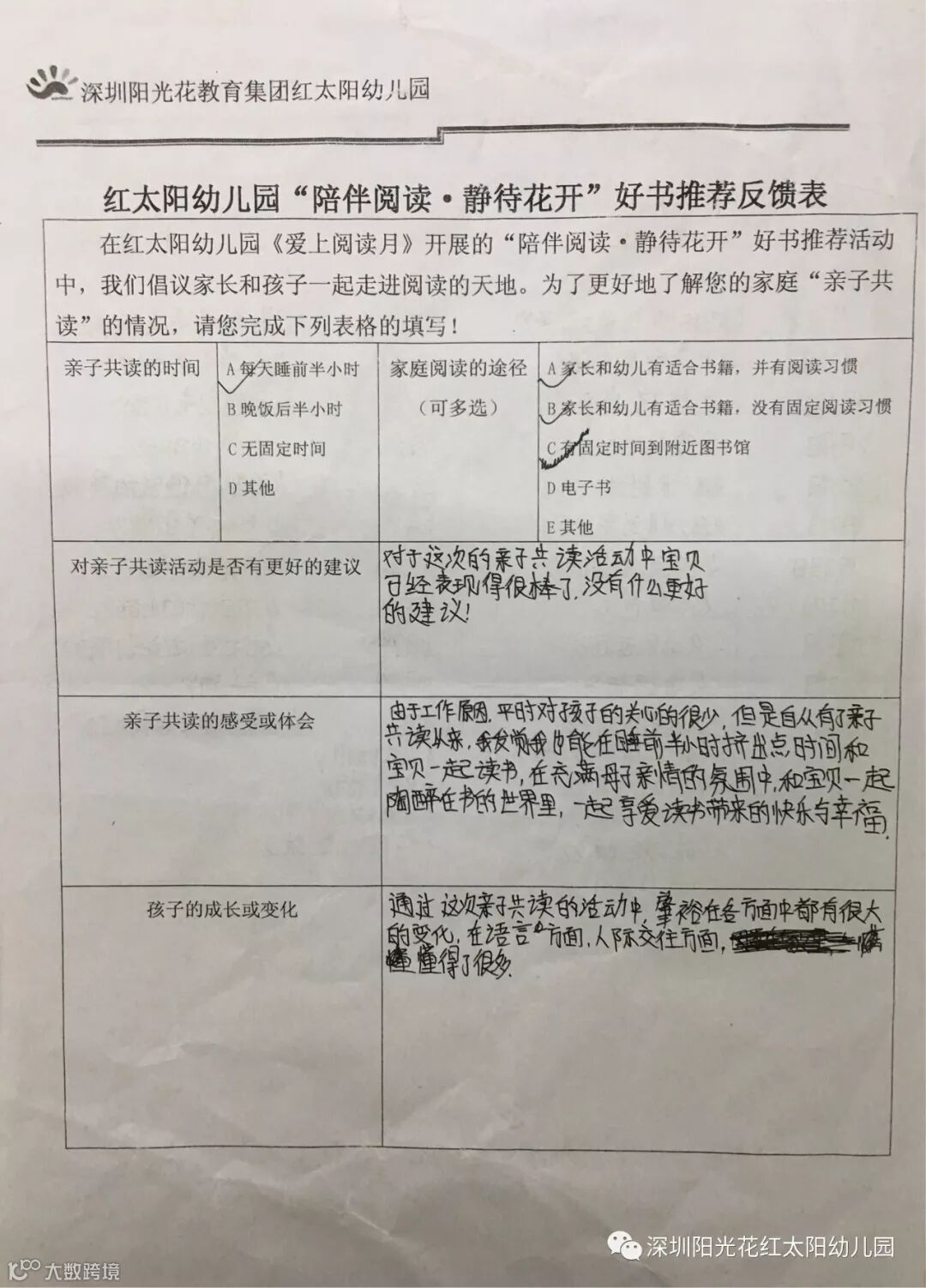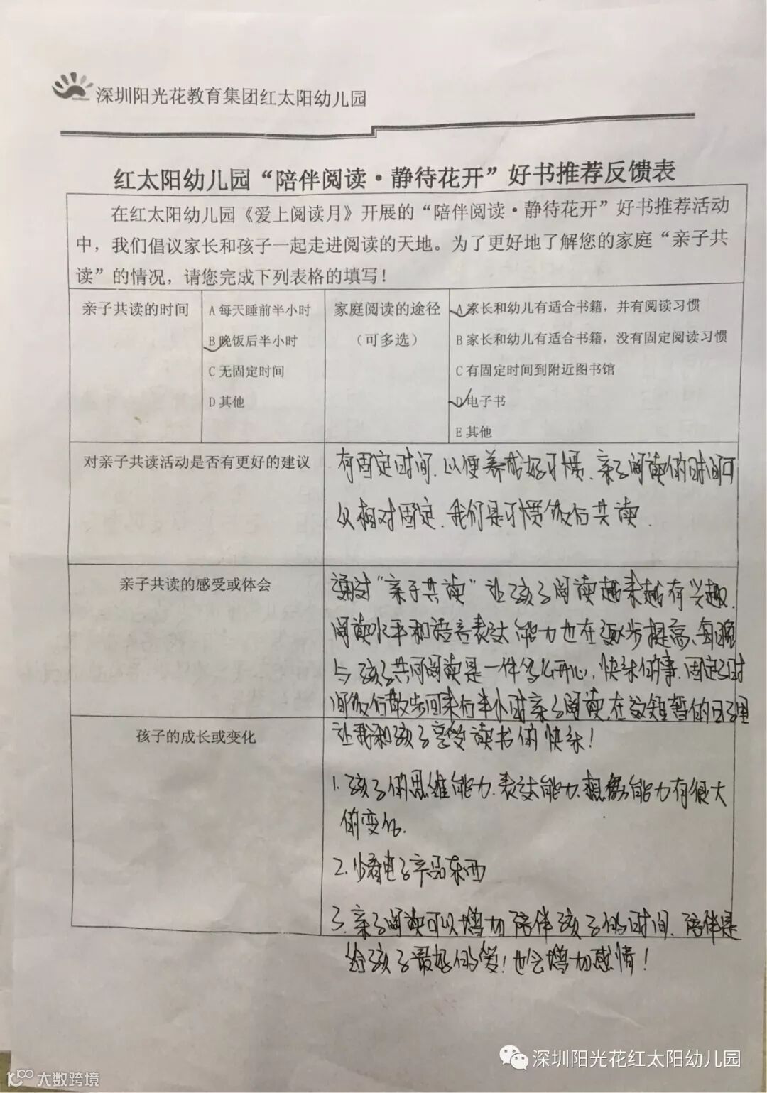 通过此次红太阳幼儿园亲子共读活动,幼儿和家长都获得一次深刻的心灵洗礼,孩子们感受到父母的爱与温暖,在爱与鼓励的互动中汲取传统美德的涵养,在孩子幼小的心田植入喜欢阅读的种子,为幼儿良好阅读习惯的养成起到有益的促进作用。书是一颗小小的种子,当父母把它种在孩子的心田,再用耐心去浇灌,小小的种子就会爆发出勃勃生机,长成参天大树,启迪心灵,滋养智慧。