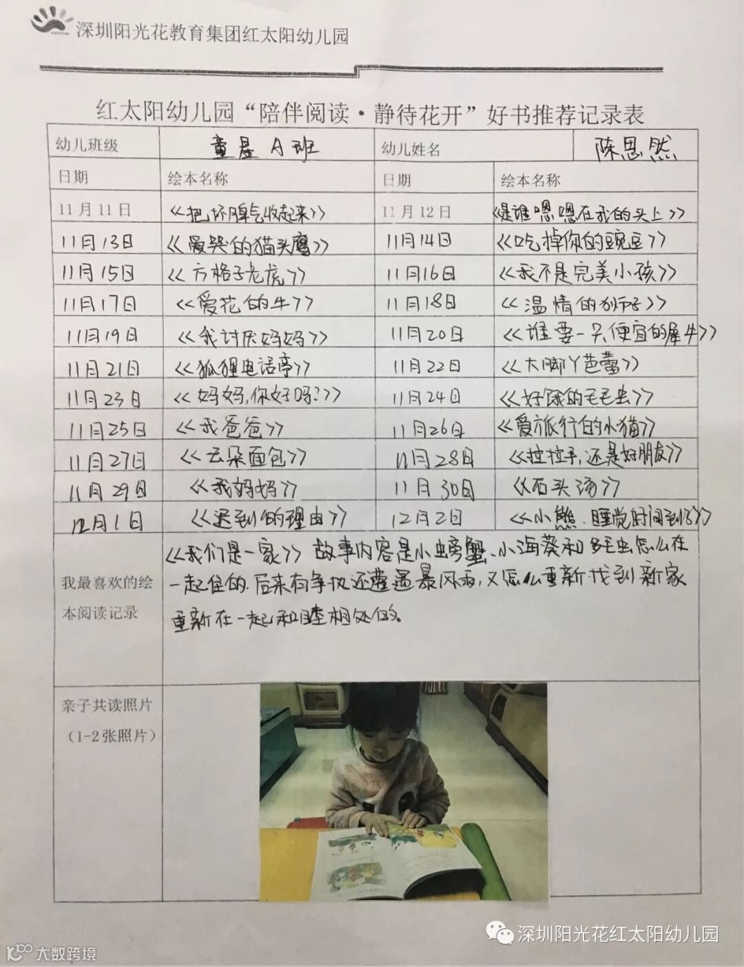 为弘扬中华民族传统美德,培养儿童的阅读兴趣,营造浓郁的家庭读书氛围,让家长感知幼儿园重视幼儿早期阅读活动,对于促进自己宝宝的语言发展能力有重要而长远影响,提升家长对幼儿园的总体感知价值,尤其是情感价值。通过开展早期阅读活动,营造家庭阅读氛围,提高亲子情感,培养宝宝良好的阅读习惯。红太阳幼儿园开展“陪伴阅读·静待花开”好书推荐的亲子阅读活动。活动历时22天,共有600多个家庭参加。