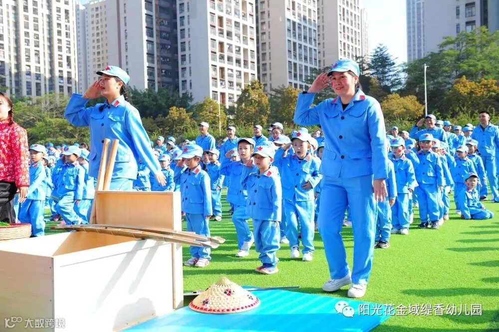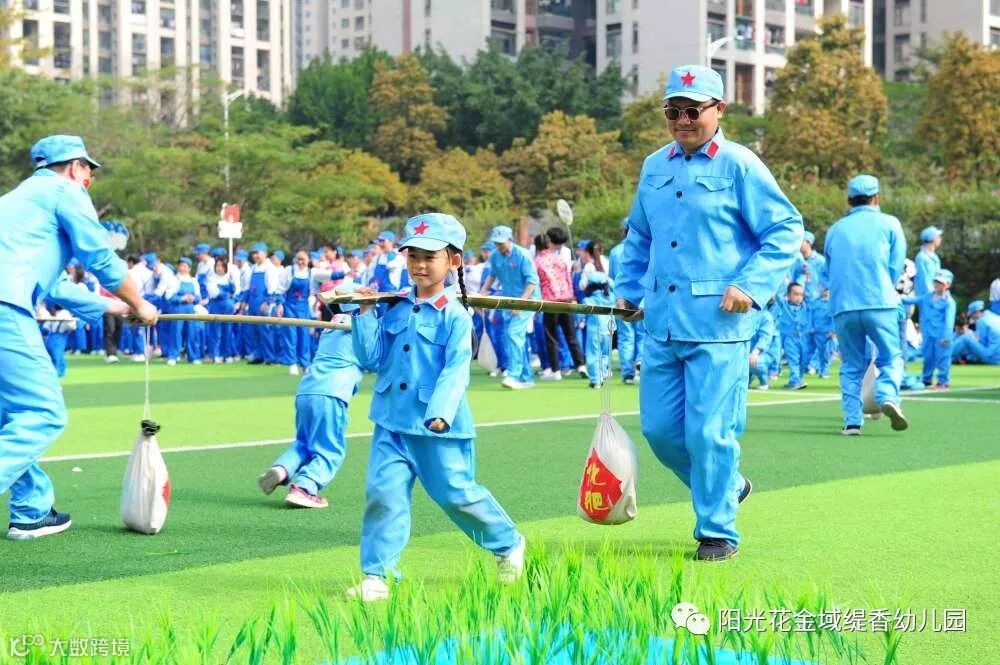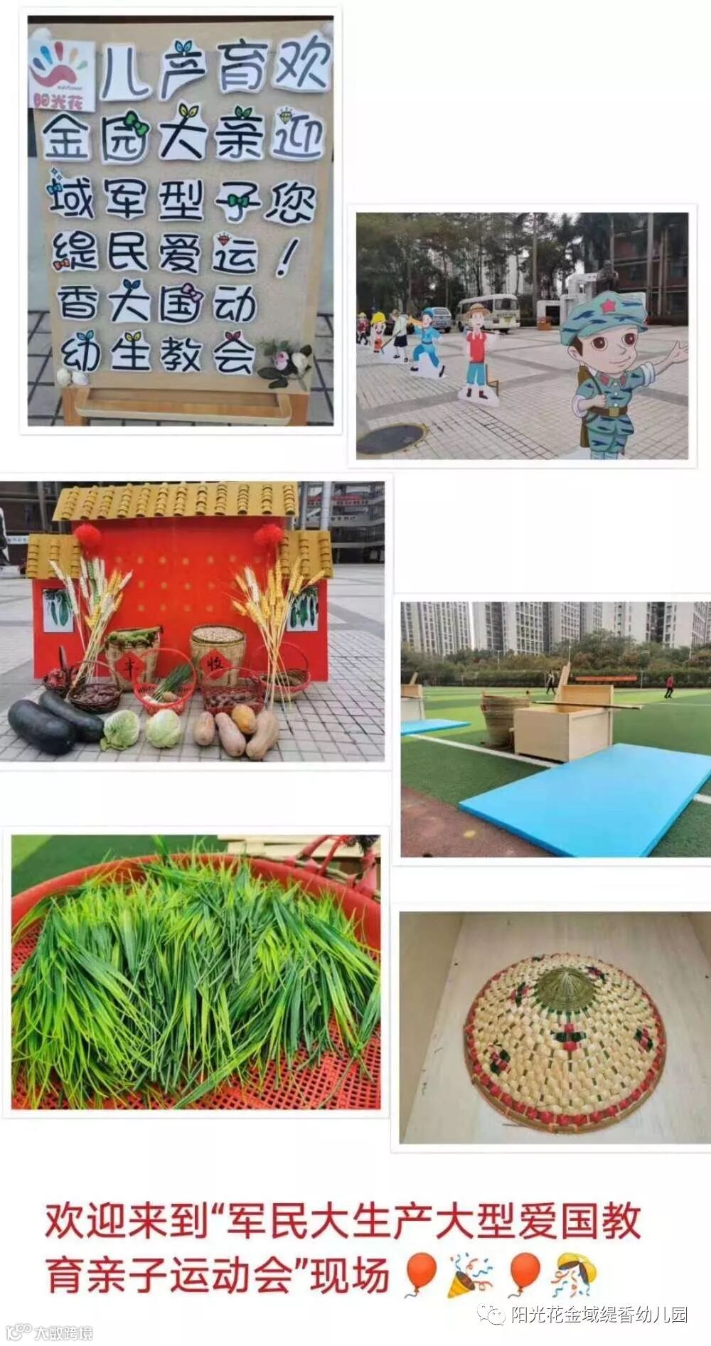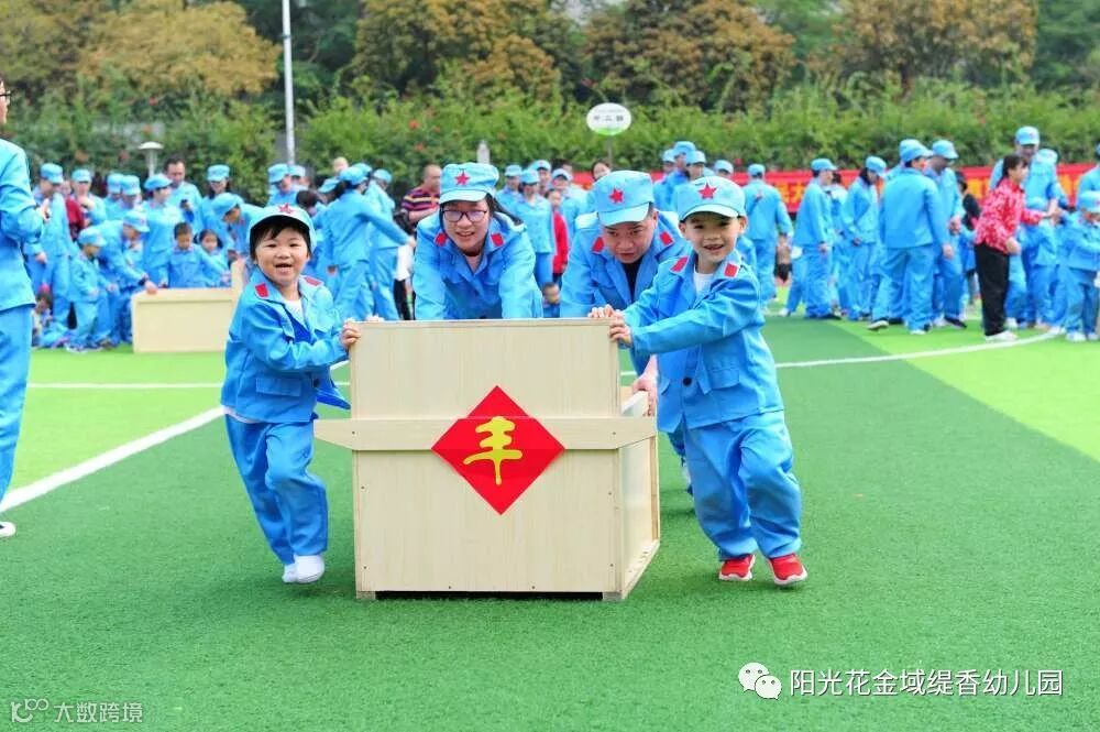 为了让幼儿从小树立良好的人生观、社会观、价值观,激发幼儿爱国主义情坏,在游戏中让幼儿体验劳动的快乐与愉悅,培养幼儿勇敢坚强的意志品德,同时为庆祝中华人民共和国成立70周年,抓住教育契机。2019年12月22日阳光花金域缇香幼儿园举行了“军农大生产”大型爱国主义教育亲子运动会。