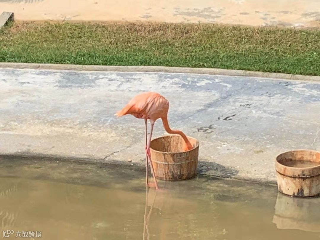丹丹: “那让我们一起观察一下吧” 只见不一会儿,火烈鸟貌似听见了小朋友的疑惑,走到水桶边,把头埋进桶里喝起了水。