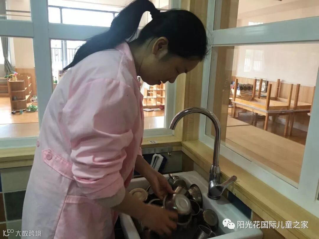 幼儿的水杯都是专人专用,老师们还会根据气候的不同适当增减孩子们的饮水次数,保证孩子们的饮水量,孩子们用完的水杯和餐具保育老师每天都会细心的冲洗、消毒。