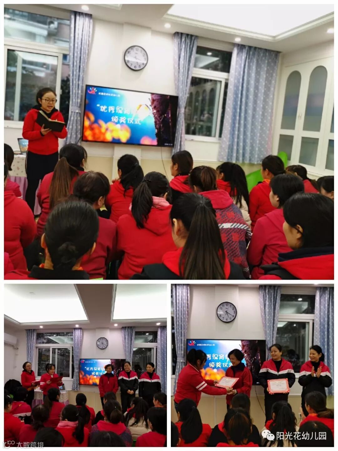 金荣园长和张亮园长给表现卓越的保育老师们颁奖。