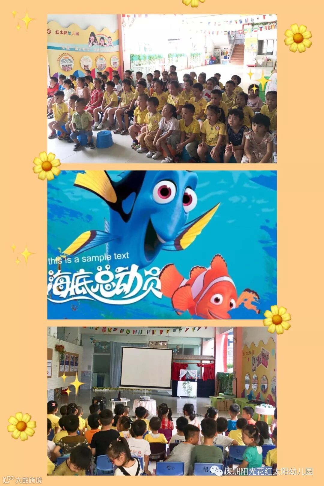 宝贝们一起观看了电影《海底总动员》,看电影的同时我们还给生日会的宝贝们准备了水果,供宝贝们自主享用。
