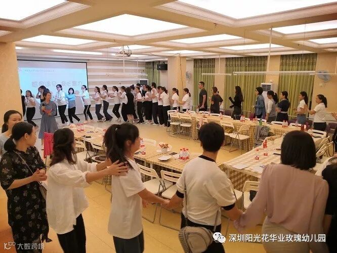 为了更好地进入氛围,加强团队协作能力,在主持人的提议下,大家先进行了团队拓展游戏。游戏规则为:每个人就是五毛钱,当念到两块钱时,就要有四个人抱团蹲下,如果有多一个人或少一个人就算挑战失败。