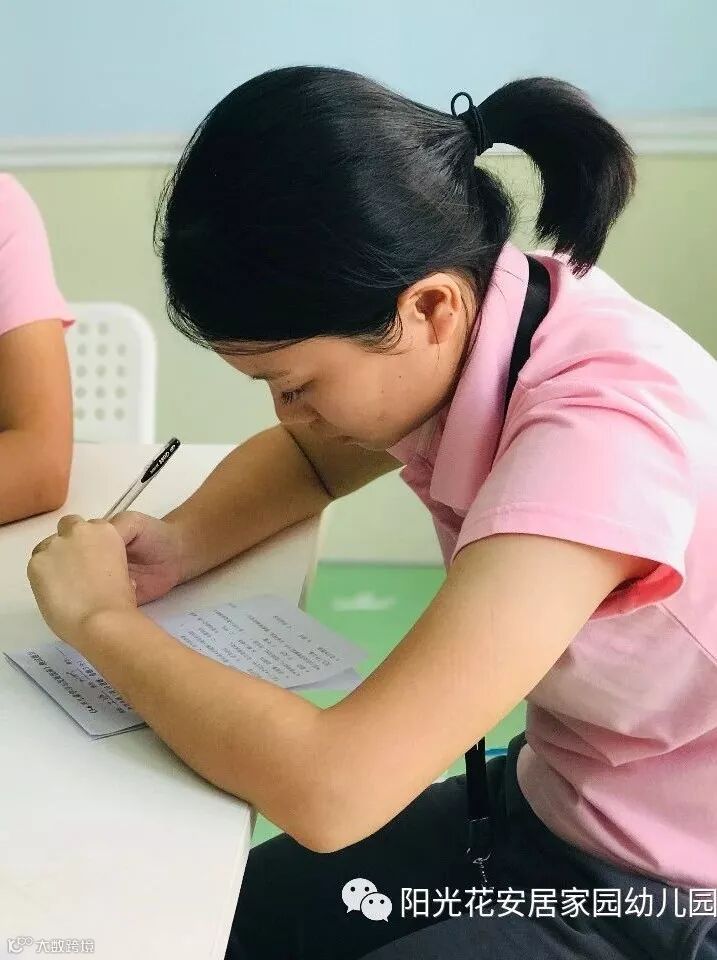 现场考核中,老师们埋头伏笔,好像又回到了学生时代,为了让自己更专业,夯实理论基础,更好的为孩子们服务,每一位老师,此时此刻都变身为一名考生,认真应对考核。