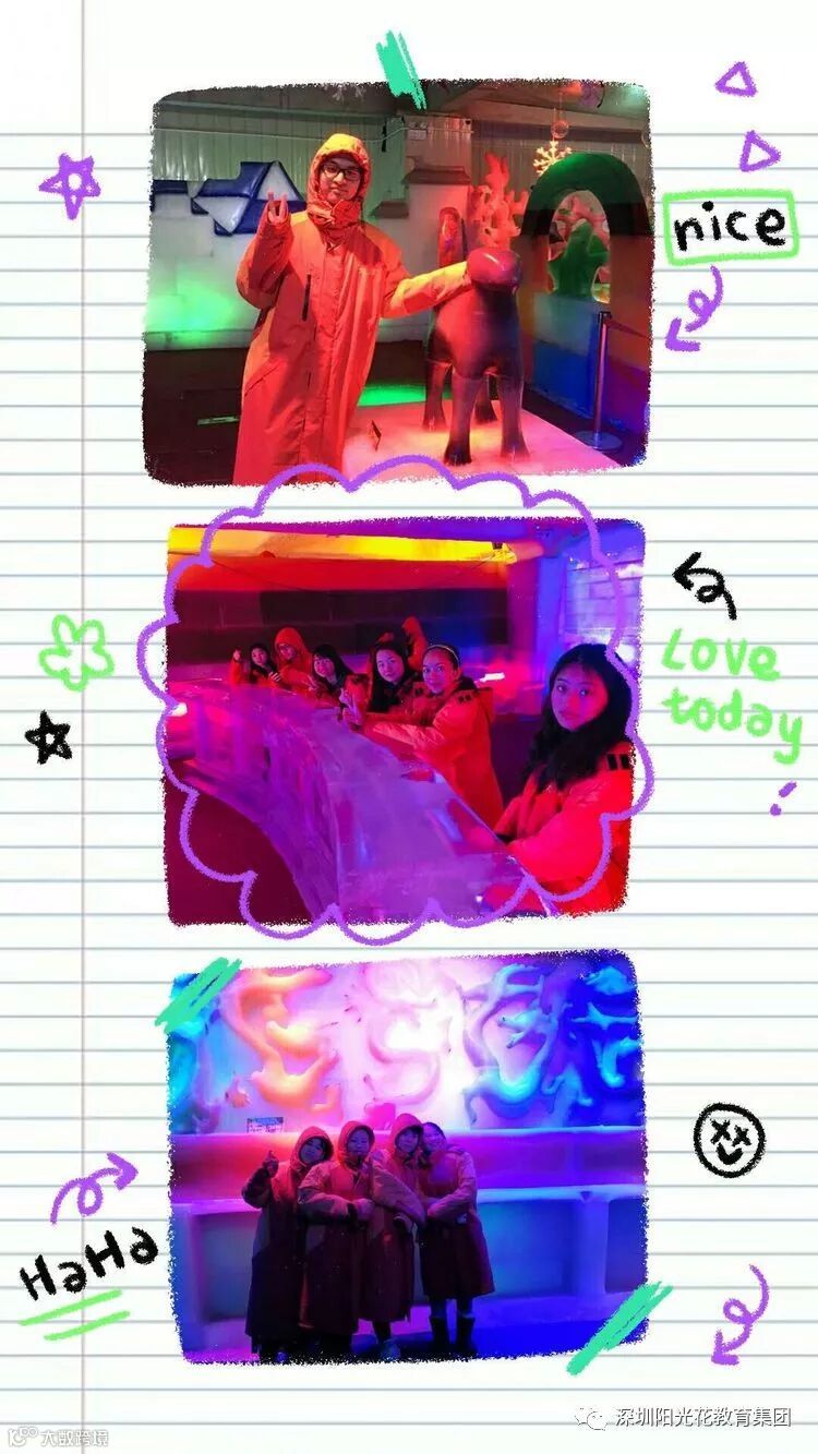 再来是我们的第三站,老师们都穿好了装备,出发——冰雪大世界。